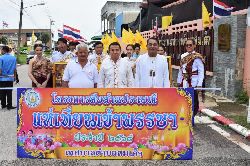 รายละเอียด : วันที่ 9 กรกฎาคม 2568 เวลา 13.00 น. เทศบาลตำบลสมเด็จ โดยนายตรีเนตร แก้วสิมมา นายกเทศมนตรีตำบลสมเด็จ พร้อมด้วยคณะผู้บริหาร สมาชิกสภาเทศบาล พนักงานเทศบาล ร่วมกับหน่วยงานในภาคส่วนต่างๆ ทั้งส่วนราชการ องค์กร เอกชน สถาบันการศึกษา รวมทั้งชุมชนต่างๆในเขตพื้นที่เทศบาลตำบลสมเด็จ ได้ร่วมกันจัดงานประเพณีแห่เทียนเข้าพรรษา ประจำปี 2568 ณ สนามหน้าที่ว่าการอำเภอสมเด็จ พร้อมร่วมถวายเทียน ณ วัดสี่แยกสมเด็จ วัดรังษีชัชวาลย์ และวัดตรีรัตนาราม โดยได้รับเกียรติจากนายวิชาญ อิทธิฤกษ์มงคล นายอำเภอสมเด็จ ให้เกียรติเป็นประธานในพิธี พร้อมด้วยหัวหน้าส่วนราชการในอำเภอสมเด็จ เข้าร่วมพิธี