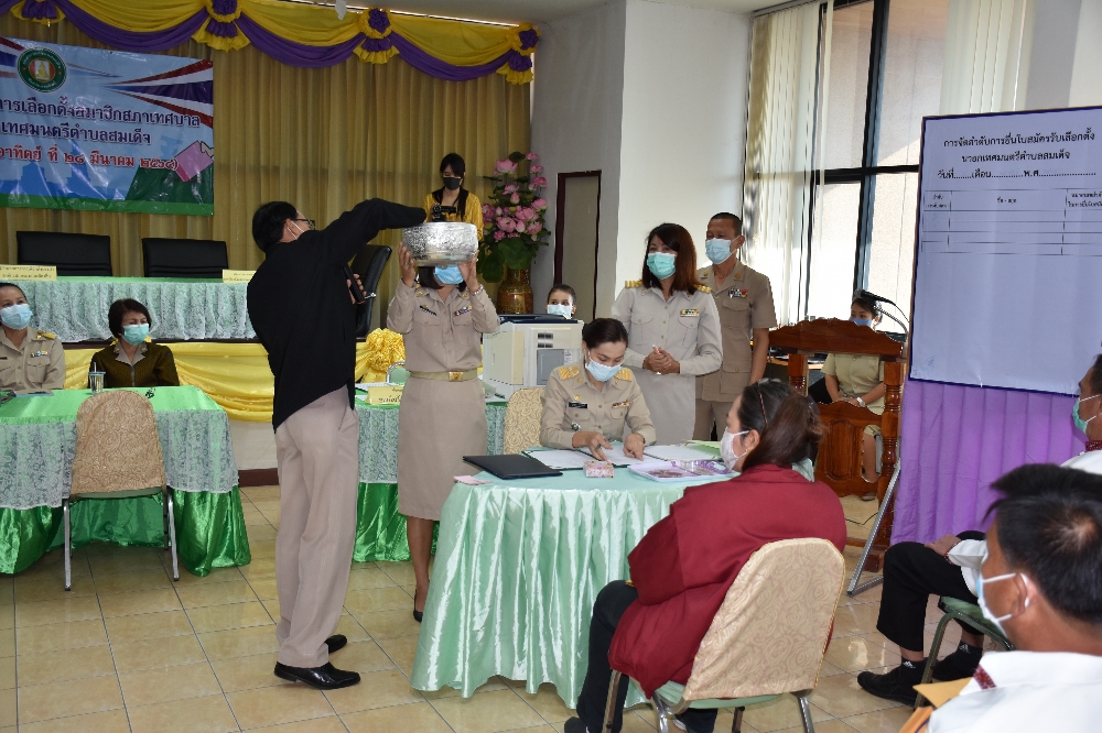 บรรยากาศการรับสมัครนายกเทศมนตรีตำบลสมเด็จ/สมาชิกสภาเทศบาลตำบลสมเด็จ วันแรก