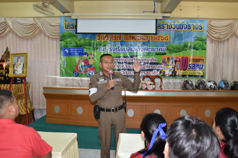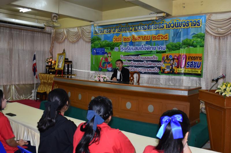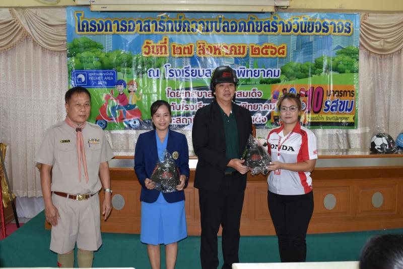 รายละเอียด : วันที่ 27 สิงหาคม เวลา 08.30 น. นายตรีเนตร แก้วสิมมา นายกเทศมนตรีตำบลสมเด็จ เป็นประธานในพิธีเปิดโครงการอาสารักษ์ความปลอดภัยสร้างวินัยจราจร ประจำปี พ.ศ.2568 โดยโครงการดังกล่าวมีวัตถุประสงค์เพื่อให้เยาวชนมีความรู้เกี่ยวกับกฎหมายจราจร การขับขี่รถจักรยานยนต์ให้ปลอดภัย และมาตรการต่างๆ ที่เสริมสร้างความปลอดภัยทางถนน โดยได้รับเกียรติจาก สภ.สมเด็จ และ หจก.สุพัฒน์มอเตอร์ สาขาอำเภอสมเด็จ เป็นวิทยากร และสนับสนุนหมวกนิรภัย ณ ห้องโสตทัศนศึกษา โรงเรียนสมเด็จพิทยาคม
