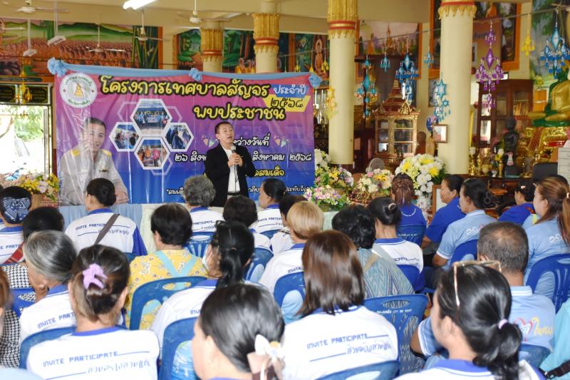 รายละเอียด : วันที่ 27 สิงหาคม 2568 เวลา 09.30 น. นายตรีเนตร แก้วสิมมา นายกเทศมนตรีตำบลสมเด็จ พร้อมด้วยคณะผู้บริหาร สมาชิกสภาเทศบาล และพนักงานเทศบาลได้ลงพื้นที่ เพื่อรับฟังปัญหาความเดือดร้อนของประชาชนชุมชนหมู่ที่ 2 หมู่ที่ 4 และหมู่ที่ 6 ในโครงการเทศบาลสัญจรพบประชาชน ประจำปีงบประมาณ 2568 ณ วัดสี่แยกสมเด็จ เพื่อเป็นการส่งเสริมการมีส่วนร่วมของประชาชนในการพัฒนาท้องถิ่น สามารถแก้ไขปัญหาได้ตรงจุด และทันท่วงที ภายในงานได้มีการให้บริการต่างๆ ของหน่วยงานในเทศบาล อาทิ บริการฉีดวัคซีนป้องกันโรคพิษสุนัขบ้า ให้สุนัขและแมว, บริการให้คำปรึกษาด้านกฎหมาย ,รับเรื่องราวร้องทุกข์ ,รับชำระภาษีประเภทต่างๆ , รับลงทะเบียนเบี้ยยังชีพผู้สูงอายุ,ผู้พิการ,เด็กแรกเกิด,การรับสมัครสมาชิกกองทุนวันละบาท ,การรับชำระเงินกลุ่มสงเคราะห์เทศบาลตำบลสมเด็จ ,บริการตัดผมฟรี ,สอนวิธีการพับดอกไม้ขากใบเตย