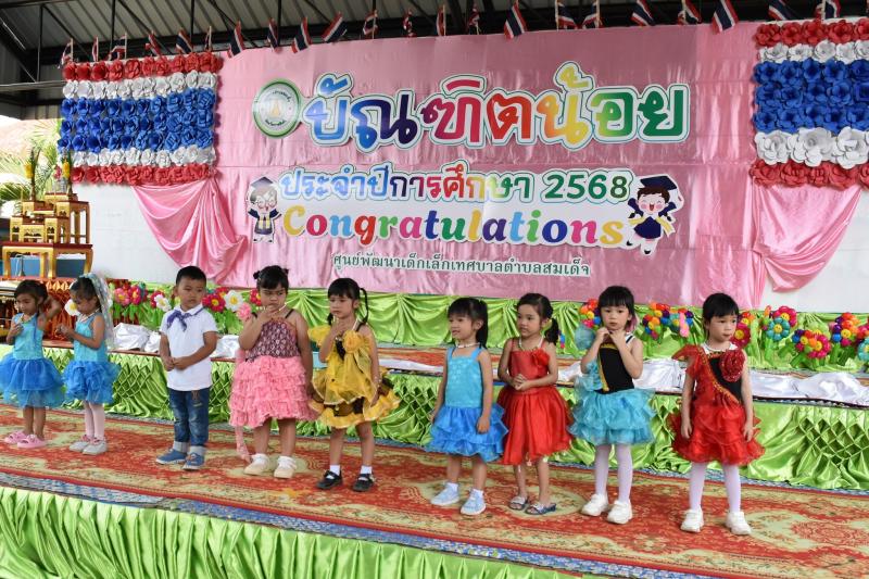 description วันที่ 20 มีนาคม 2569 เวลา 09.00 น. เทศบาลตำบลสมเด็จ โดยนายตรีเนตร แก้วสิมมา นายกเทศมนตรีตำบลสมเด็จ ได้จัดโครงการบัณฑิตน้อย ประจำปี พ.ศ.2568 ขึ้น เพื่อให้เด็กที่จบหลักสูตรเตรียมความพร้อมทุกคนและผู้ปกครองได้ร่วมกิจกรรมแห่งความภาคภูมิใจ และเป็นก้าวแรกในการส่งเสริมให้เด็กมีจิตสำนึกและตระหนักถึงความสำคัญแห่งการศึกษา เพื่อจะเจริญเติบโตเป็นผู้ใหญ่ที่ดีต่อไปในอนาคต person admin