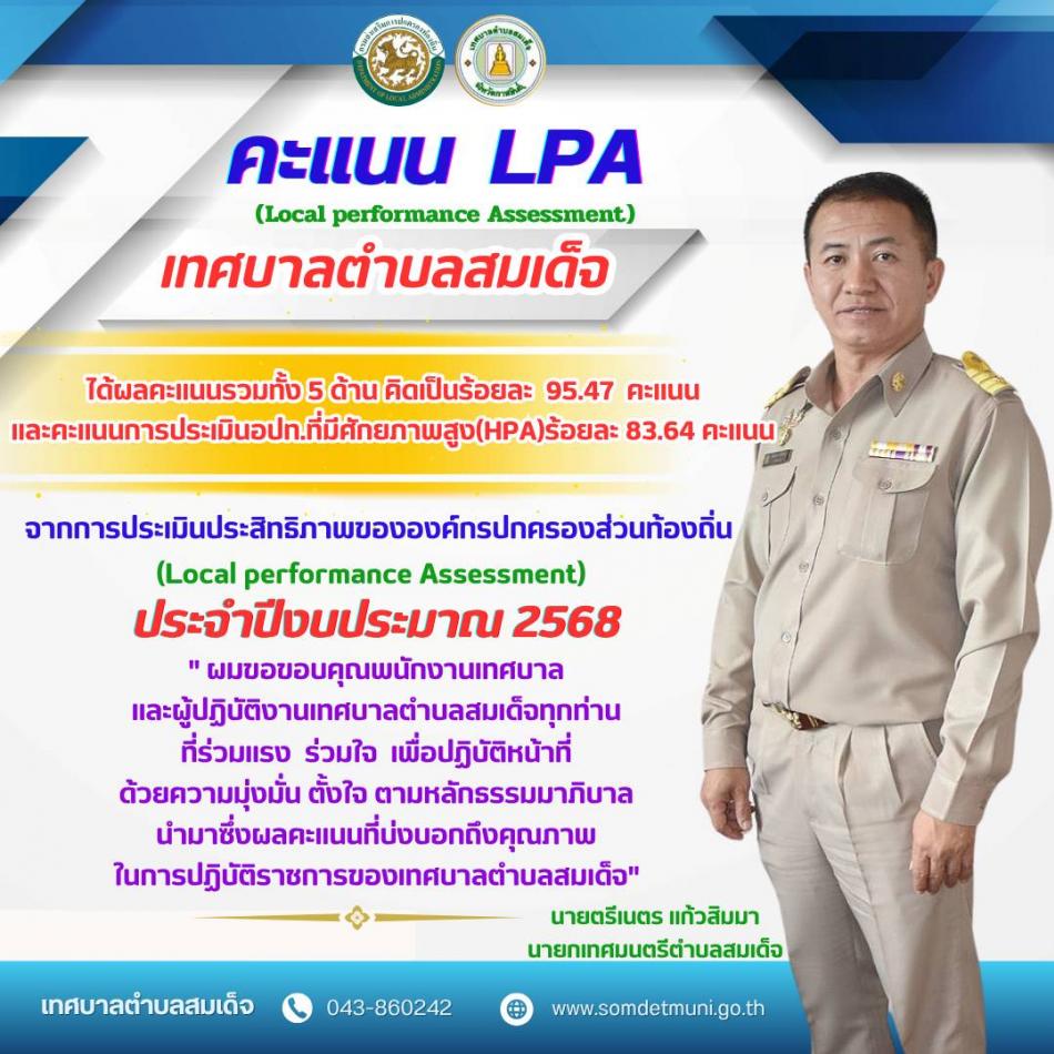 ผลการประเมินประสิทธิภาพขององค์กรปกครองส่วนท้องถิ่น LPA ประจำปี 2568 [15 กรกฎาคม 2568]