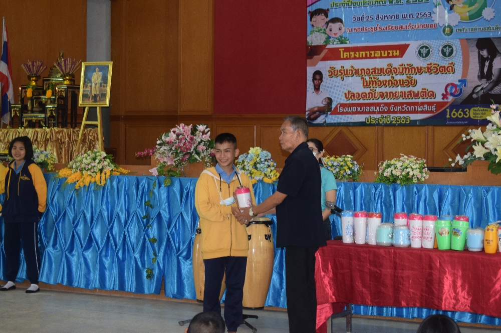 รายละเอียด : วันที่ ๒๕ สิงหาคม ๒๕๖๓ นายไสว ภูวานคำ รองนายกเทศมนตรีเทศบาลตำบลสมเด็จ พร้อมด้วย นางสาวพัชรินทร์ ถิตย์กุล ผู้อำนวยการกองสวัสดิการสังคม และเจ้าหน้าที่ทุกคน จัดกิจกรรมโครงการล้อมอ้อมกอดด้วยอุ่นไอรัก ประจำปีงบประมาณ พ.ศ. ๒๕๖๓ เพื่อสร้างเสริมความเข้มแข็งจากสถาบันที่เล็กที่สุดของสังคมเพื่อเป็นเกราะป้องกันปัญหาที่จะเกิดขึ้นในสังคม ณ ห้องประชุมศรีสมเด็จ โรงเรียนสมเด็จพิทยาคม อำเภอสมเด็จ