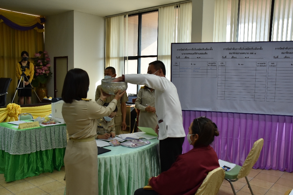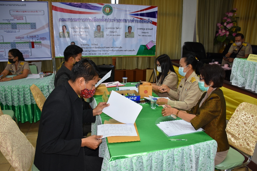บรรยากาศการรับสมัครนายกเทศมนตรีตำบลสมเด็จ/สมาชิกสภาเทศบาลตำบลสมเด็จ วันแรก