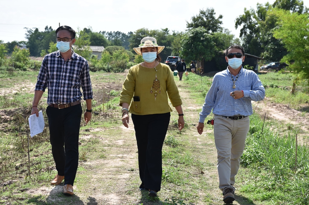 ร่วมต้อนรับผู้ว่าราชการจังหวัดกาฬสินธุ์ นายอำเภอสมเด็จ ที่ได้ร่วมออกเยี่ยมชมแปลงครัวเรือนต้นแบบ โคกหนองนา