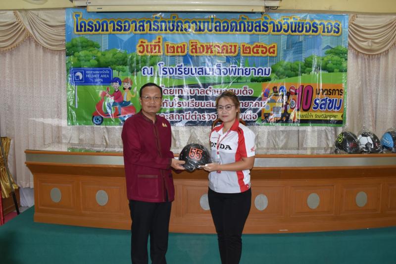 รายละเอียด : วันที่ 27 สิงหาคม เวลา 08.30 น. นายตรีเนตร แก้วสิมมา นายกเทศมนตรีตำบลสมเด็จ เป็นประธานในพิธีเปิดโครงการอาสารักษ์ความปลอดภัยสร้างวินัยจราจร ประจำปี พ.ศ.2568 โดยโครงการดังกล่าวมีวัตถุประสงค์เพื่อให้เยาวชนมีความรู้เกี่ยวกับกฎหมายจราจร การขับขี่รถจักรยานยนต์ให้ปลอดภัย และมาตรการต่างๆ ที่เสริมสร้างความปลอดภัยทางถนน โดยได้รับเกียรติจาก สภ.สมเด็จ และ หจก.สุพัฒน์มอเตอร์ สาขาอำเภอสมเด็จ เป็นวิทยากร และสนับสนุนหมวกนิรภัย ณ ห้องโสตทัศนศึกษา โรงเรียนสมเด็จพิทยาคม