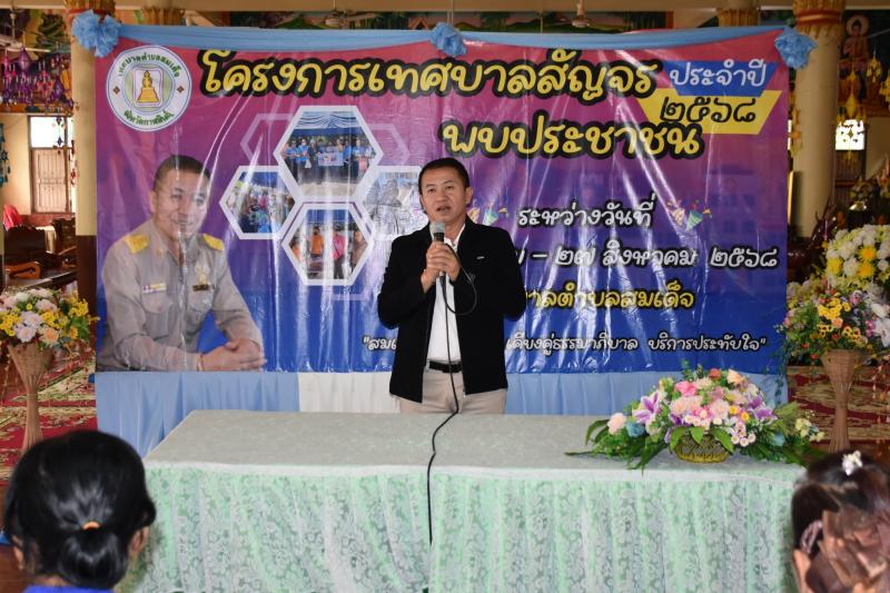 รายละเอียด : วันที่ 27 สิงหาคม 2568 เวลา 09.30 น. นายตรีเนตร แก้วสิมมา นายกเทศมนตรีตำบลสมเด็จ พร้อมด้วยคณะผู้บริหาร สมาชิกสภาเทศบาล และพนักงานเทศบาลได้ลงพื้นที่ เพื่อรับฟังปัญหาความเดือดร้อนของประชาชนชุมชนหมู่ที่ 2 หมู่ที่ 4 และหมู่ที่ 6 ในโครงการเทศบาลสัญจรพบประชาชน ประจำปีงบประมาณ 2568 ณ วัดสี่แยกสมเด็จ เพื่อเป็นการส่งเสริมการมีส่วนร่วมของประชาชนในการพัฒนาท้องถิ่น สามารถแก้ไขปัญหาได้ตรงจุด และทันท่วงที ภายในงานได้มีการให้บริการต่างๆ ของหน่วยงานในเทศบาล อาทิ บริการฉีดวัคซีนป้องกันโรคพิษสุนัขบ้า ให้สุนัขและแมว, บริการให้คำปรึกษาด้านกฎหมาย ,รับเรื่องราวร้องทุกข์ ,รับชำระภาษีประเภทต่างๆ , รับลงทะเบียนเบี้ยยังชีพผู้สูงอายุ,ผู้พิการ,เด็กแรกเกิด,การรับสมัครสมาชิกกองทุนวันละบาท ,การรับชำระเงินกลุ่มสงเคราะห์เทศบาลตำบลสมเด็จ ,บริการตัดผมฟรี ,สอนวิธีการพับดอกไม้ขากใบเตย