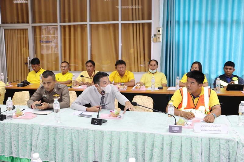การประชุมเพื่อแก้ไขปัญหาน้ำท่วมผิวจราจร ถนน ทล.213 สายสมเด็จ-สกลนคร บริเวณหน้าโรงพยาบาลสมเด็จ