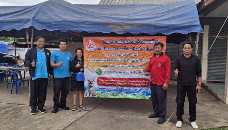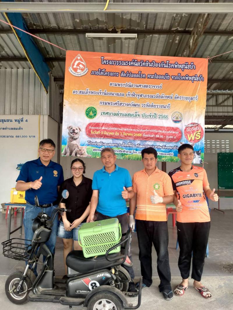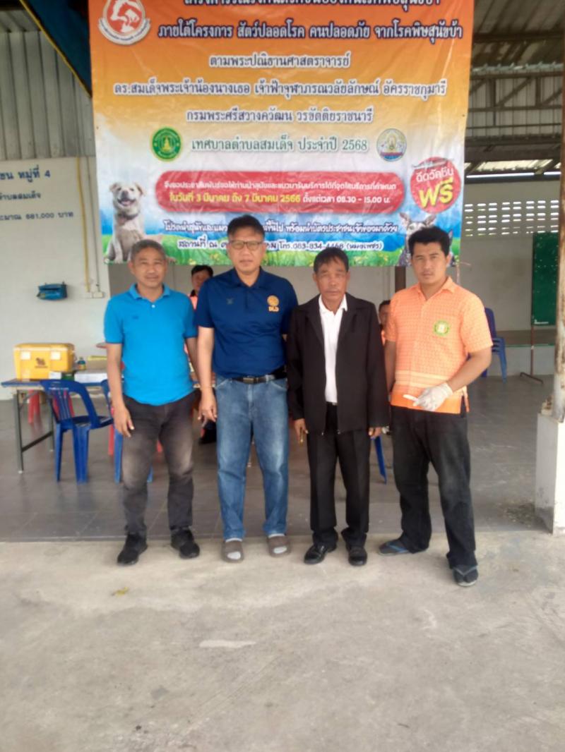 ออกหน่วยให้บริการเคลื่อนที่ฉีดวัคซีนป้องกันโรคพิษสุนัขบ้า ในเขตเทศบาลตำบลสมเด็จทั้ง 6 ชุมชน "ภายใต้โครงการ"สัตว์ปลอดโรค คนปลอดภัย จากโรคพิษสุนัขบ้า " ตามพระปณิธานศาสตราจารย์ ดร.สมเด็จพระเจ้าน้องนางเธอ เจ้าฟ้าจุฬาภรณ์วลัยลักษณ์ อัครราชกุมารี กรมพระศรีสวางควัฒน วรขัตติยราชนารี เทศบาลตำบลสมเด็จ ประจำปี 2568