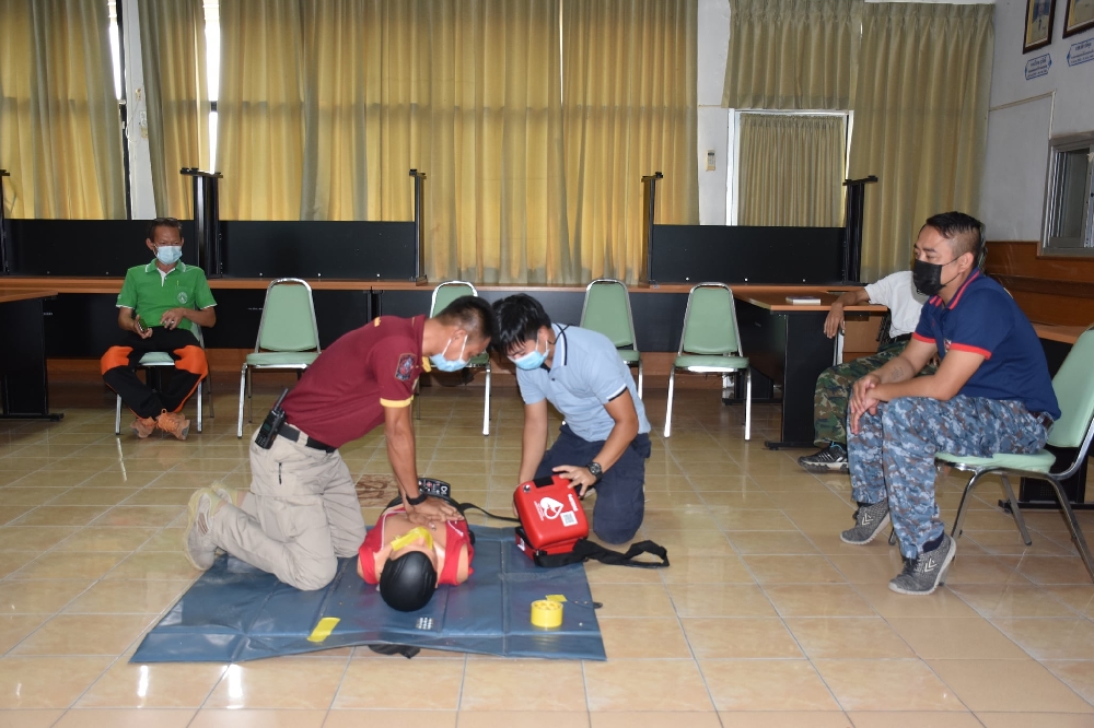 งานป้องกันและบรรเทาสาธารณภัย เทศบาลตำบลสมเด็จ ได้ฝึกการทำ CPR และการใช้เครื่องกระตุกไฟฟ้าหัวใจอัตโนมัติ (AED [20 พฤษภาคม 2564]
