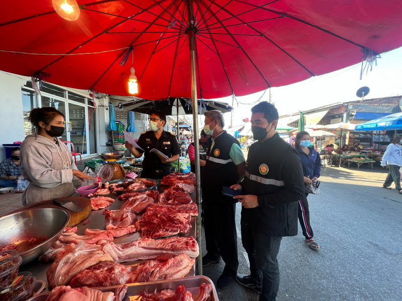 งานสัตว์แพทย์เทศบาลตำบลสมเด็จร่วมกับปศุสัตว์อำเภอสมเด็จออกตรวจสอบใบอนุญาตจำหน่ายเนื้อสัตว์ของผู้ประกอบการในตลาดสดเทศบาลตำบลสมเด็จ [19 มกราคม 2565]