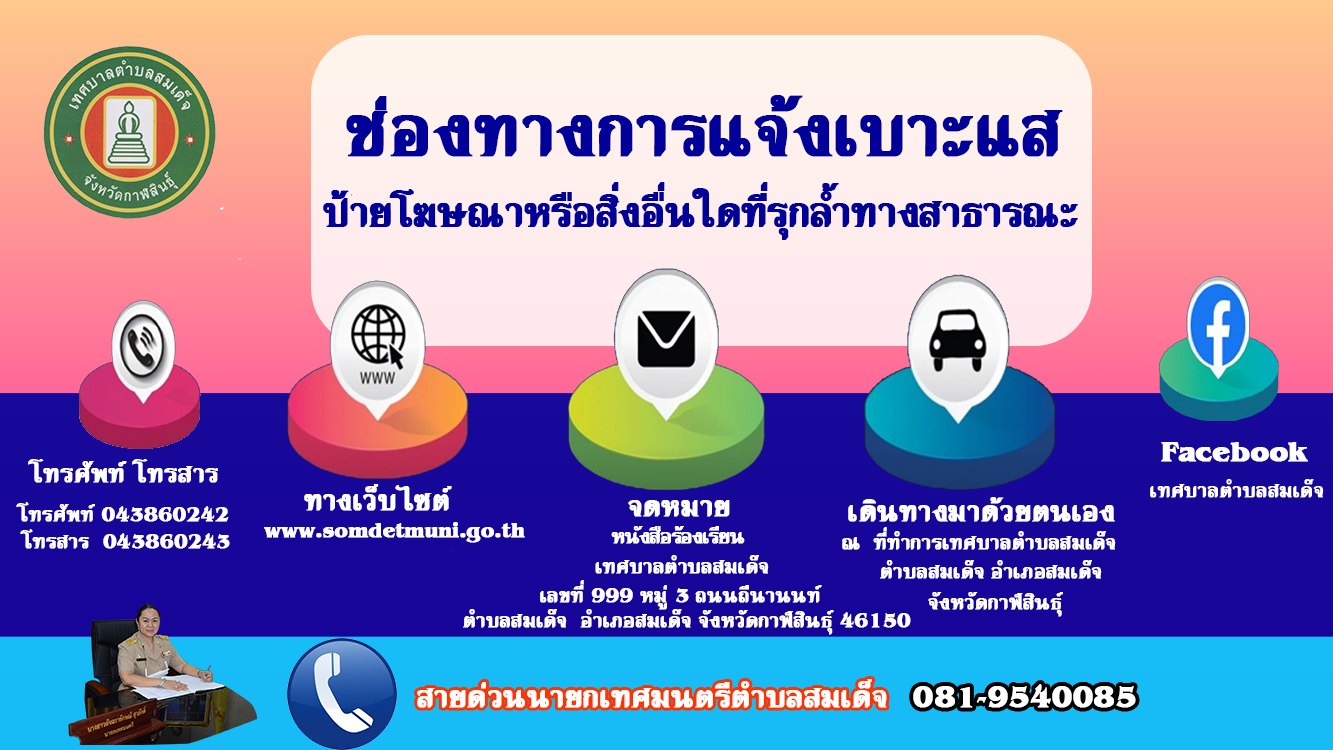 เพื่อให้การดำเนินงานในเรื่องดังกล่าวเป็นไปด้วยความเรียบร้อย เทศบาลตำบลสมเด็จ จึงดำเนินการตามมาตรการป้องกันการละเว้นการปฏิบัติหน้าที่ในการบังคับใช้กฎหมายเกี่ยวกับป้ายโฆษณาบนทางสาธารณะ สามารถแจ้งเบาะแสป้ายโฆษณาหรือสิ่งอื่นใดที่รุกล้ำทางสาธารณะที่ไม่ชอบด้วยกฎหมายตามช่องทางต่างๆของเทศบาลตำบลสมเด็จ