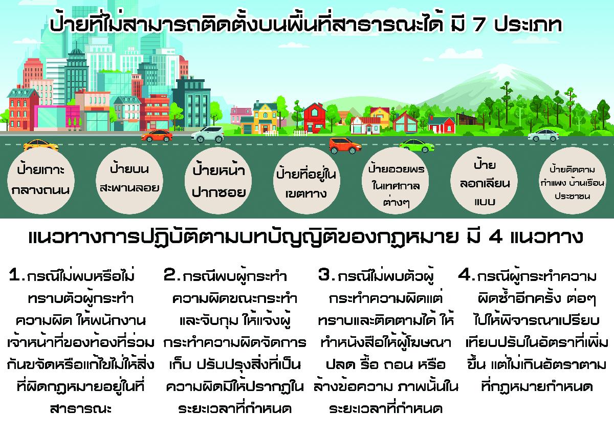 ชื่อเรื่อง : ช่องทางการแจ้งเบาะแสป้ายโฆษณาหรือสิ่งอื่นใดที่รุกล้ำทางสาธารณะหรือไม่ชอบด้วยกฎหมาย